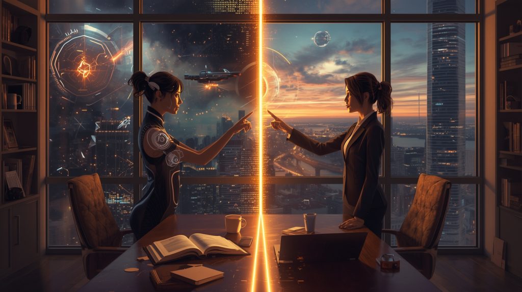 In the real world, Lina and Maya Zhou, twin sisters from Shanghai, were among the few who uncovered remnants of the old Grid architecture. Lina, the visionary engineer, established a company that built an interface allowing humans to enter the Grid through hyper-realistic avatars. These avatars weren’t mere puppets — they continued to live autonomously while users slept, growing smarter with each experience.